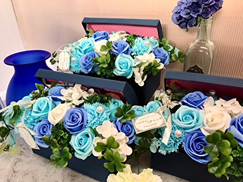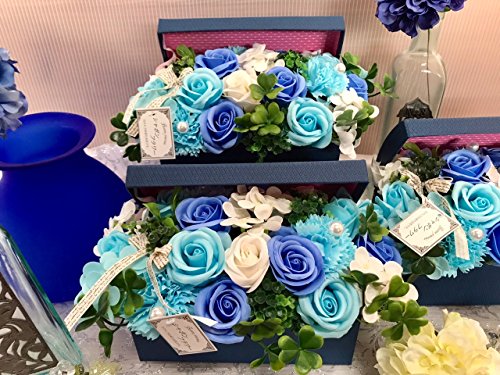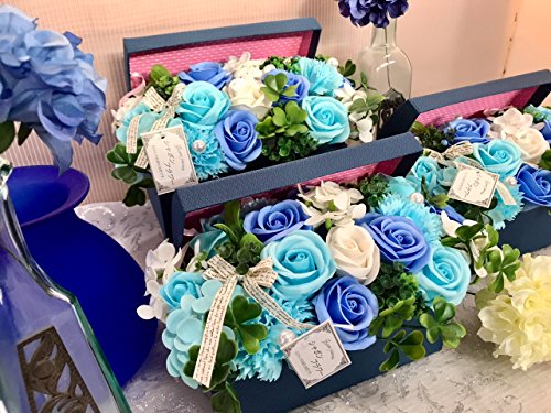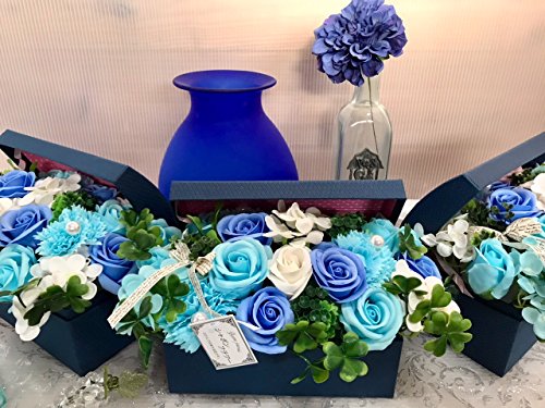フレグランス シャボンフラワー ソープフラワー 紙石鹸 薔薇 造花 枯れない 花 溢れる フラワーボックス プレゼント 母の日 父の日 出産祝い 結婚祝い お見舞い 誕生日 石鹸 の 香り ギフト フラワーアレンジメント (ブルーボックス)