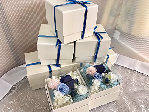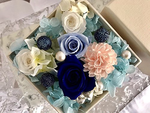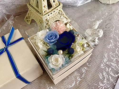 プリザーブドフラワー 枯れない 花 フラワー ギフト アレンジメント 母の日 薔薇 父の日 卒業 入学 出産 お祝い プレゼント に最適 ギフト ボックス カラーバリエーション 豊富 リボン付きボックス ラッピング 包装 クリアカバー 付きで 劣化防止(ブルー×白box)