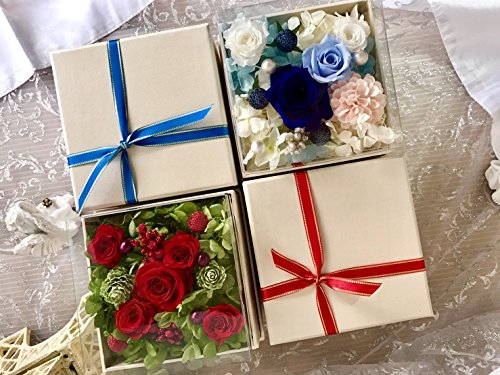 - 【Amazon限定販売オリジナル商品】最新のボックスデザイン、リボンラッピング包装を施した枯れない花、プリザーブドフラワーです。クリアカバー付きなので汚れや劣化を防ぎます。