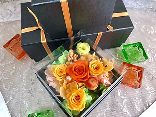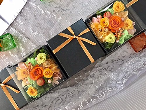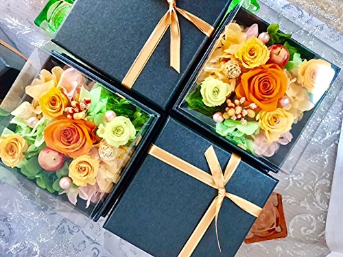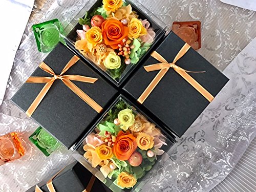 プリザーブドフラワー 枯れない 花 フラワー ギフト アレンジメント 母の日 父の日 卒業 入学 出産 お祝い プレゼント に最適 ギフト ボックス カラーバリエーション 豊富 リボン付きボックス ラッピング 包装 クリアカバー 付きで 劣化防止 (オレンジ×黒box)