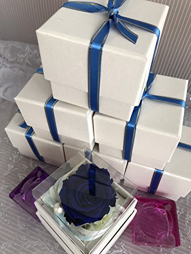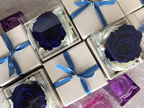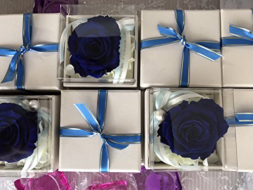 プリザーブドフラワー 枯れない 花 フラワー ギフト アレンジメント 母の日 父の日 卒業 入学 出産 お祝い プレゼント に最適 ギフト ボックス カラーバリエーション 豊富 リボン付きボックス ラッピング 包装 クリアカバー 付きで 劣化防止 (ブルー×小box白)