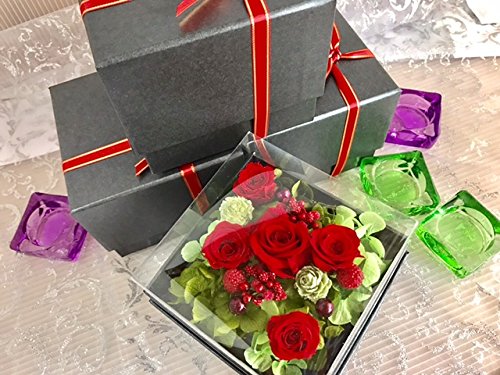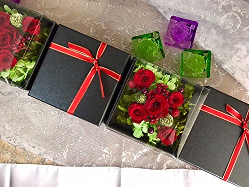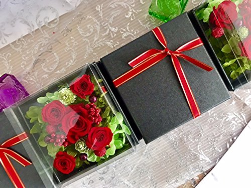 プリザーブドフラワー 枯れない 花 フラワー ギフト アレンジメント 母の日 父の日 卒業 入学 出産 お祝い プレゼント に最適 ギフト ボックス カラーバリエーション 豊富 リボン付きボックス ラッピング 包装 クリアカバー 付きで 劣化防止 (レッド×黒box)