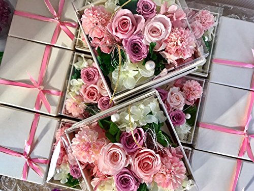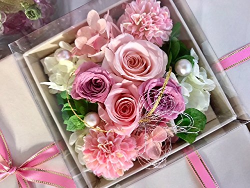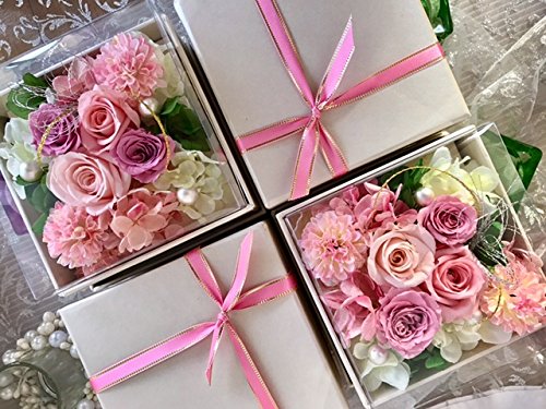 - 【Amazon限定販売オリジナル商品】最新のボックスデザイン、リボンラッピング包装を施した枯れない花、プリザーブドフラワーです。クリアカバー付きなので汚れや劣化を防ぎます。