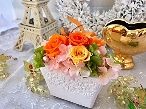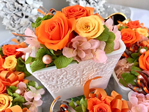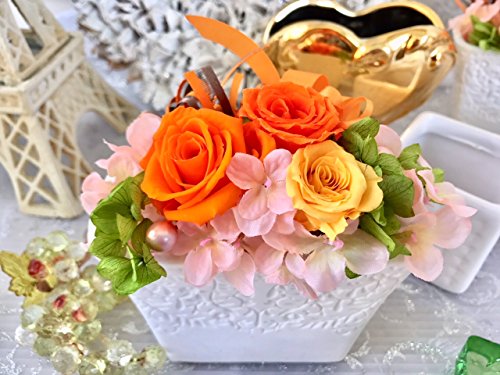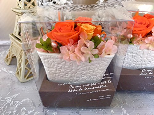 プリザーブドフラワー 白陶器 母の日 父の日 枯れない 花 フラワー ギフト アレンジメント 薔薇 卒業 入学 出産 お祝い プレゼント に最適 ギフト クリアケース 付きで 劣化防止 (オレンジ)