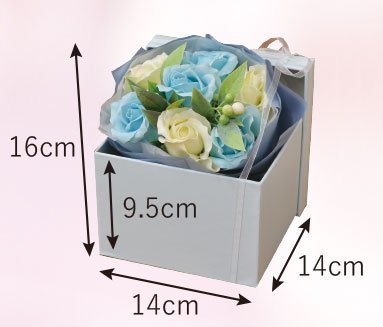 - 【ボックスサイズ】高さ9.5×幅14×奥行14cm【ブーケ入れた場合】高さ16×幅14cm×奥行14cm 専用バック付き