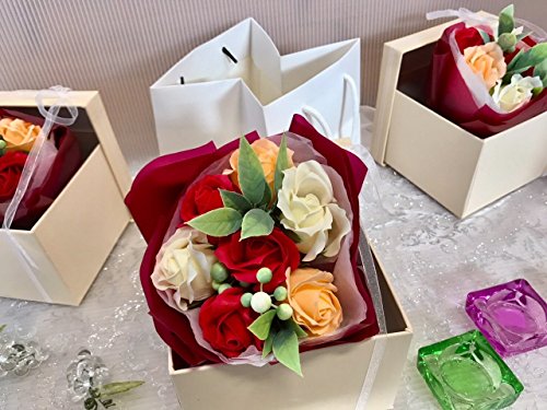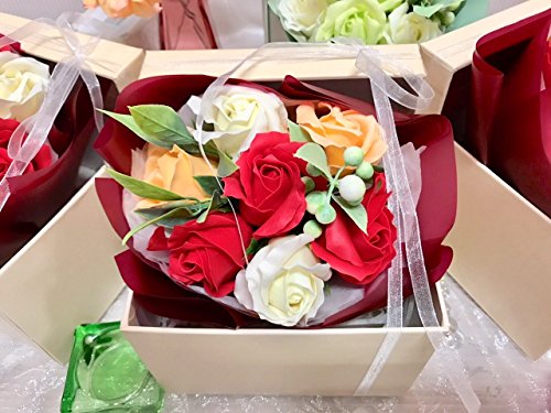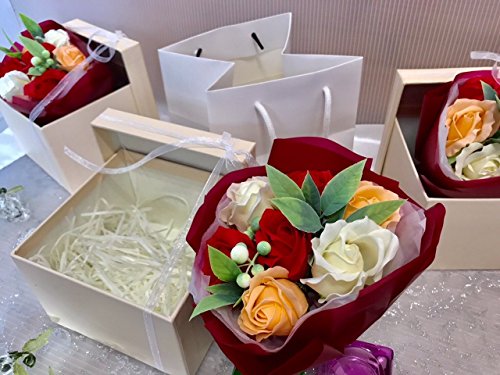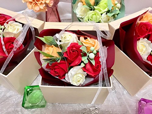 フレグランス シャボンフラワー ソープフラワー 薔薇 枯れない 花 ボックス 入り ブーケ クリスマス プレゼント 花束 母の日 出産祝い 結婚祝い お見舞い 誕生日 石鹸 香り ギフト お祝い ラッピング 包装【専用バック付き】 (レッド)