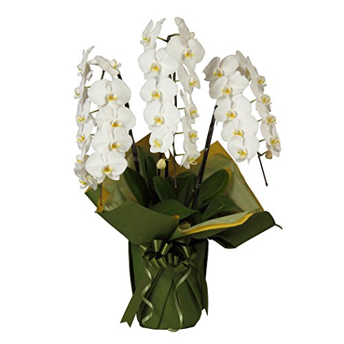 花市場直送便 大輪胡蝶蘭 3本立ち 30~36輪 スタンダード白 緑ラッピング 立て札無し