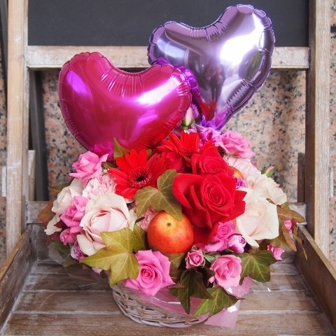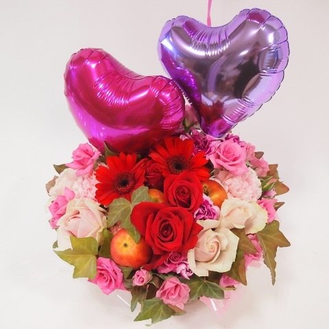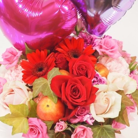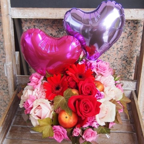 - サイズ 幅 28cm 高さ45cm 花材 バラ バルーン その他小花 ご希望があればお持ち帰り用袋お付け致します。
