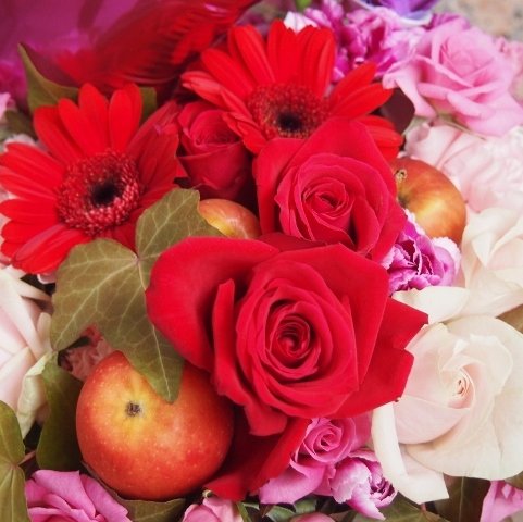 - 植物につき、お花の大きさ・形・色は季節や出荷状況により若干異なる場合がありますが、ボリューム・質感は変わらずに制作させていただきます。お花は花市場より仕入れた最も新鮮な花材で心を込めてで制作致します☆