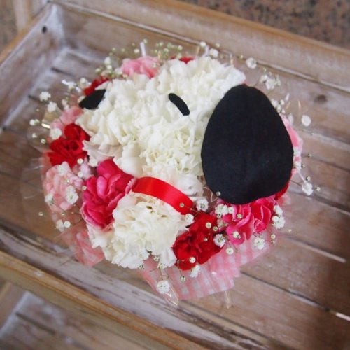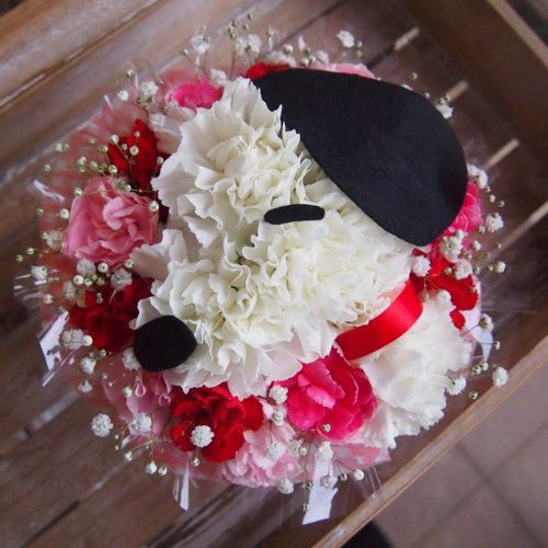 富山県のお花屋さん 『花金』 待望のAmazonに登場!! 「お花で日本中の皆さんに笑顔にしたい!」 をモットーに、 都内トップクラスの有名花店にて修行したフローリスト、 辻井紀生が 富山県より全国へ可愛いお花をお届けいたします!! 大人気弊社オリジナルキャラアレンジメント!! 待望のSサイズ!!! 持ち運びもしやすく、お値段も可愛く登場です☆☆ カーネーションでわんわんを作っています!! とにかくとっても可愛いです。 好きな人への贈り物に最適!! 誕生日 結婚記念日 お祝い 発表会 入園・入学・出産祝い・など、あらゆるシーンの贈り物にどうぞ☆ 商品は画像イメージ通りに作成致しますが、花材により若干仕上がりが異なる場合がございます。