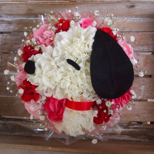 高岡大仏前花金 (スヌーピーS30) わんわんパラダイス☆スヌーピー風なキャラアレンジ☆(サイズS) (サイズ 幅 15cm 高さ13cm)母の日 敬老の日 父の日 誕生日 発表会 お祝い 結婚記念日 結婚祝い 還暦 ギフト 内祝い 出産祝い お見舞い ☆☆ついに待望のAmazonに登場!! 富山県より全国へ可愛いお花をお届けいたします「高岡大仏前花金」大人気商品!フラワーアレンジメント