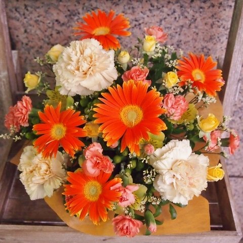 富山県のお花屋さん 『花金』 待望のAmazonに登場!! 「お花で日本中の皆さんに笑顔にしたい!」 をモットーに、 都内トップクラスの有名花店にて修行したフローリスト、 辻井紀生が 富山県より全国へ可愛いお花をお届けいたします!! オレンジのグラデーションカラーで明るく華やかに制作しています!! カーネーション・ガーベラをメイン花材にボリューム良く仕上げました! どこから見ても綺麗にお花が入っており、お客様に喜ばれるデザインとなっております! 誕生祝い・歓送迎会・発表会など、あらゆるシーンの贈り物にどうぞ! 商品は画像イメージ通りに作成致しますが、花材により若干仕上がりが異なる場合がございます。