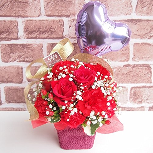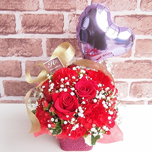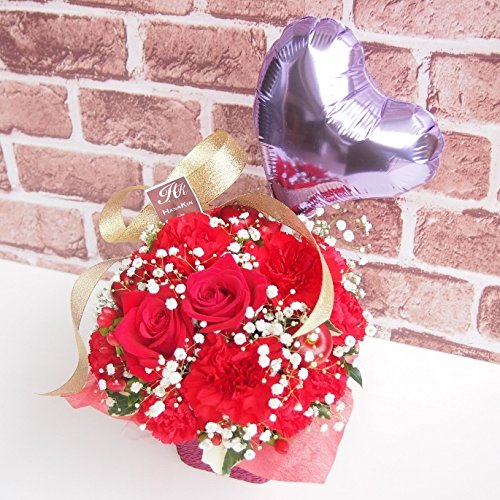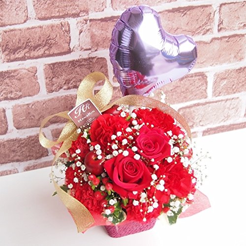 富山県のお花屋さん 『花金』 待望のAmazonに登場!! 「お花で日本中の皆さんに笑顔にしたい!」 をモットーに、 都内トップクラスの有名花店にて修行したフローリスト、 辻井紀生が 富山県より全国へ可愛いお花をお届けいたします!! バルーン付き商品☆普通じゃない特別なサプライズギフトにオススメです! 豪華洋蘭入り!!鮮やかで豪華な赤バラを使い明るく華やかに制作しています!!バラ カーネーション・カスミソウをメイン花材にボリューム良く仕上げました! 綺麗にお花が入っており、ポイントにハートムラサキのバルーンを入れ、他店にはない特別なお花を送りたい方へ、スペシャルなアレンジメントになっております。当店人気NO.1。 誕生祝い・結婚記念日・発表会・結婚祝い・いい夫婦の日・展示会など、あらゆるシーンの贈り物にどうぞ!! 画像イメージ通りに作成致しますが、花材により若干仕上がりが異なる場合がございます。