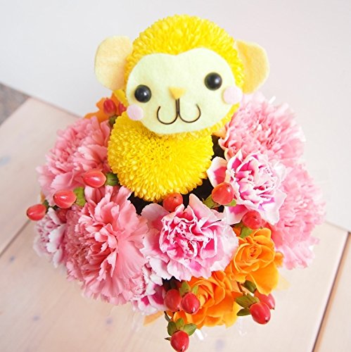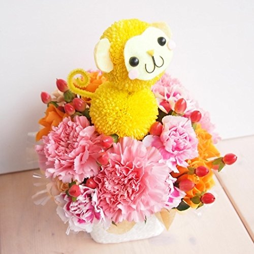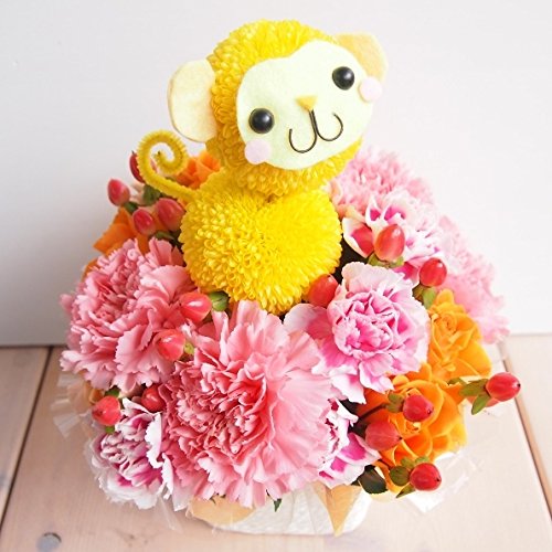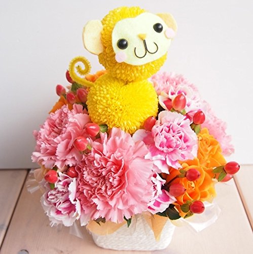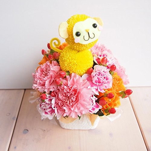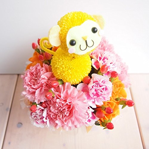 花金 モンキーちゃんのピンクアレンジメント 誕生日 ・母の日・御祝・お見舞い・結婚記念日 花束 フラワーアレンジ 猿 オサル サル 申 (サイズ 高さ:約23cm×幅18cm) )