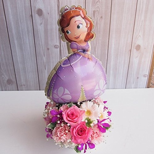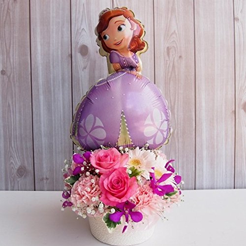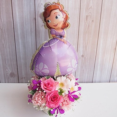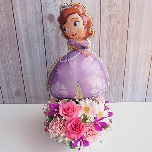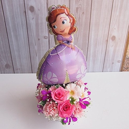 - サイズ(幅:約23cm 高さ:約45m)小さなプリンセス ソフィアのバルーン付き 花材 メイン バラ カーネーション その他 季節のお花でお作りします。 入荷の状況によって多少花材変わることがあります。画像のイメージを損なわないよう制作致します。ご希望があればお持ち帰り用袋お付け致しますのでご連絡下さいませ。