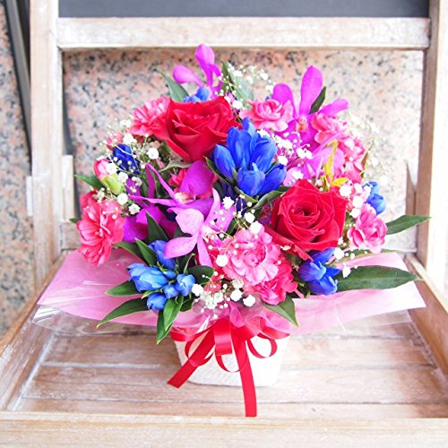 青のリンドウが入り、秋限定の季節感のあるアレンジメントとなっております。ラッピングもしっかりしており、ギフト感あるアレンジメントになっております。敬老の日・誕生日・開店祝いなど、大切な方への大切な贈り物におすすめです。サイズは幅23cm×高さ23cmです。人気の秘密は他店とは違う 「花持ちの良さ」 お届けした商品を長く楽しんでいただけますように、 抜群に品質の良いお花を使い制作しております。 ご注文の際にギフトの設定にチェックを入れてお進みください。 ※ご依頼主名のご注意※登録してるお名前のご注意 当店にAMAZONから入ってくるご注文主様の情報はAMAZONに登録頂いております氏名のみとなります。 (住所・電話番号などは開示されません) ニックネームや会社名で登録されている方はお届けする宅配伝票のご依頼主名もニックネームや会社名となりますため、 受け取られた方がどなたからのプレゼントかわからないといったお問い合わせがございます。 登録がご自分の氏名ではない場合はメッセージカードを希望で選んで頂き、 「○○より」とお届けの方にわかるお名前をご記載お願いします。