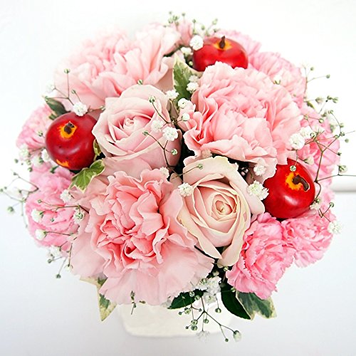 - この商品は花金・高岡本店のオリジナル商品です。 サイズ(奥行:約21cm×幅:約21cm×高さ:約21cm)花材 メイン バラ カーネーション カスミソウ その他季節のお花でお作りします。 メッセージカードも無料でお付けできます。ご注文の際にギフトの設定にチェックを入れてお進み頂きメッセージをご入力ください。 花金ではすべての花材を最高ランクの「秀」を使用して製作しております。入荷した高品質で新鮮なお花を丁寧に水揚げし、一級フローリストの資格を持つスタッフが心を込めて製作致します。