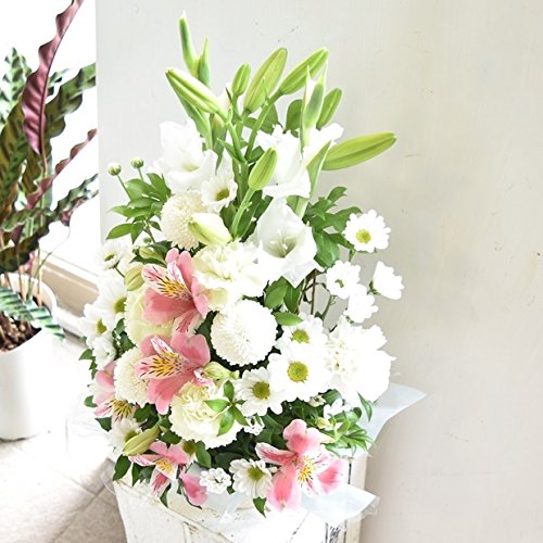 - この商品は花金・高岡本店のオリジナル商品です。 サイズ(奥行:約25cm×幅:約25cm×高さ:約45cm)花材 メイン ピンポンマム カーネーション ユリ その他季節のお花でお作りします。 メッセージカードも無料でお付けできます。ご注文の際にギフトの設定にチェックを入れてお進み頂きメッセージをご入力ください。 花金ではすべての花材を最高ランクの「秀」を使用して製作しております。入荷した高品質で新鮮なお花を丁寧に水揚げし、一級フローリストの資格を持つスタッフが心を込めて製作致します。