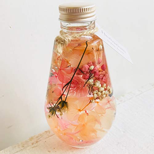 - 大人気★ギフトBOX入り!!ハーバリウムボトル☆可愛いしずくタイプです。容量200ml・サイズ(幅7cm×高さ13.5cm)人気のピンク&オレンジの色合い、ドライフラワーやペッパーベリーを入れたピンク系の大変可愛い仕様となっております。そのまま飾るだけでお手入れいらず、長期的に楽しめる人気の商品です。