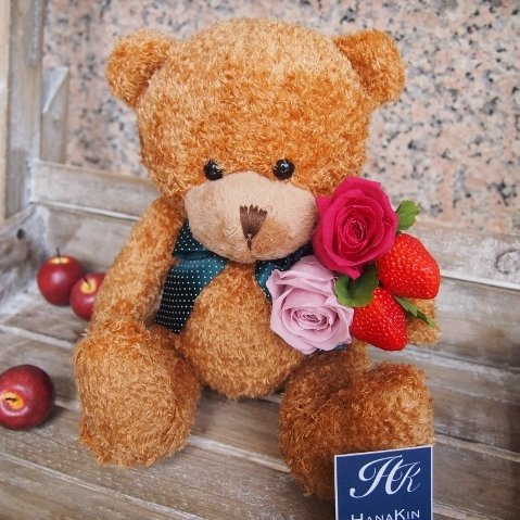 富山県のお花屋さん 『花金』 待望のAmazonに登場!! 「お花で日本中の皆さんに笑顔にしたい!」 をモットーに、 都内トップクラスの有名花店にて修行したフローリスト、 辻井紀生が 富山県より全国へ可愛いお花をお届けいたします!! 大人気弊社オリジナルくまさんプリザーブドアレンジメント☆ くまさんがイチゴと二種類のバラのプリザーブドフラワーを持っています☆お花とクマを別々に飾ることもできます☆誕生祝い・歓送迎会・発表会など、あらゆるシーンの贈り物にどうぞ! 商品は画像イメージ通りに作成致しますが、花材により若干仕上がりが異なる場合がございます。