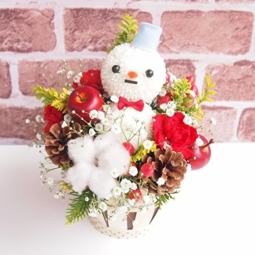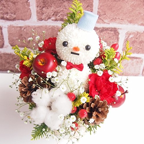 高岡大仏前花金 可愛い雪だるまちゃん(雪だるま***) クリスマス オラフ 誕生日 ・ギフト・結婚記念日 花束 フラワーアレンジ (サイズ奥行約18cm×幅:約18cm×高さ:約23cm )