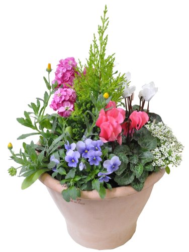 - ウィンターバージョンの鉢植えをイタリ製の9号サイズ陶器鉢にアレンジ。