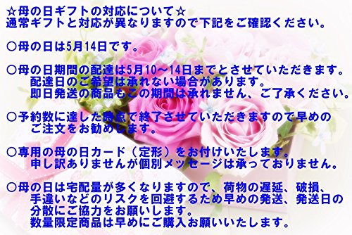 - 母の日の配達は5月8日から5月14日迄の間とさせていただきます。 配送日時の指定はできませんのでご了承ください。(即日発送品もこの間の指定はお受けできません)母の日カード(定型文)お付けします。予約数量に達した時点で終了とさせていただきますので早めのご注文をお勧めします。