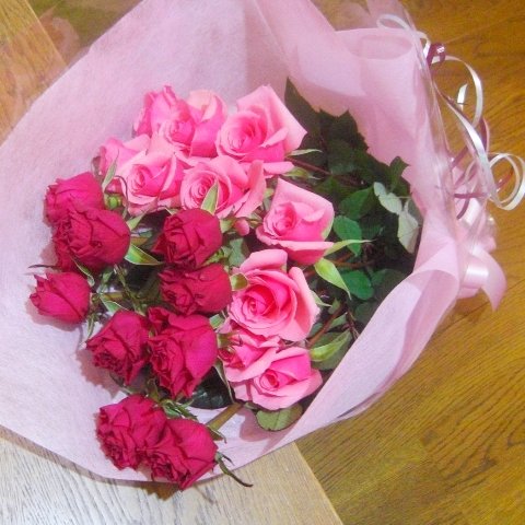 - 大輪ピンクの国産バラ20本入荷によりピンク系ミックスも有ります。