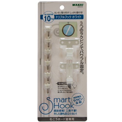WAKAI 石こうボード用トリプルフック(2個入) ホワイト