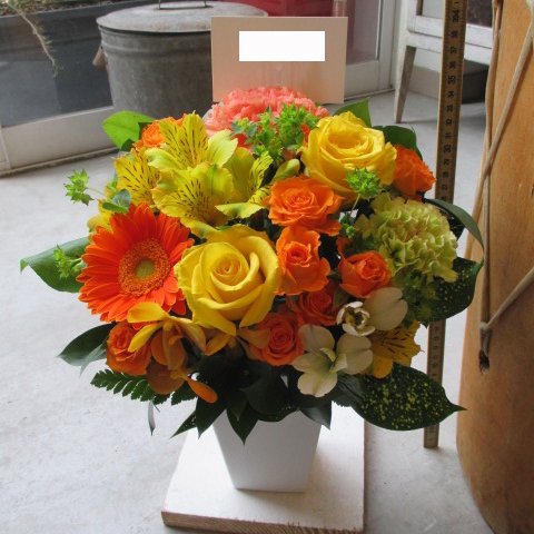 TVチャンピオン出場【今旬フラワーアレンジメント3,700円 スタンダード 黄色・オレンジ系】誕生日 花 誕生日 プレゼント 女性 フラワーアレンジメント 開業開店祝い 花 劇場 楽屋花 ギフト お見舞い お供え 花 送別会