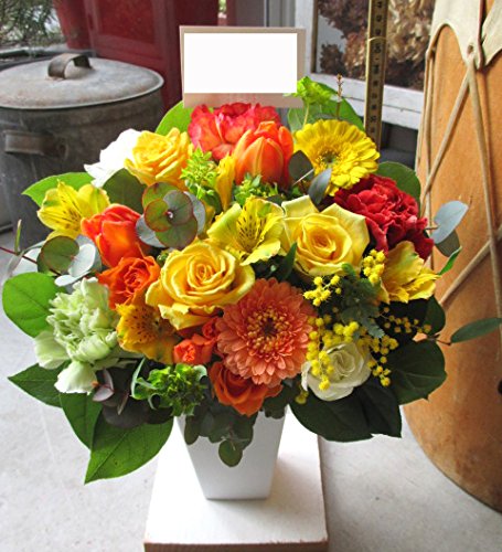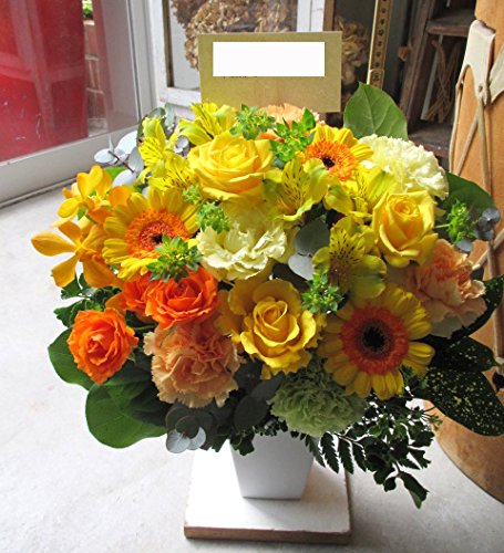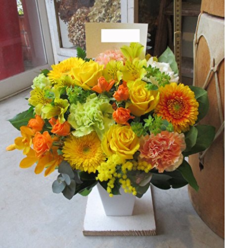 TVチャンピオン出場【今旬フラワーアレンジメント5,500円 スタンダード 黄色・オレンジ系】誕生日 花 誕生日 プレゼント 女性 フラワーアレンジメント 開業開店祝い 花 劇場 楽屋花 ギフト お見舞い お供え 花 送別会