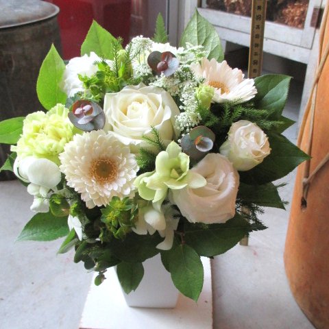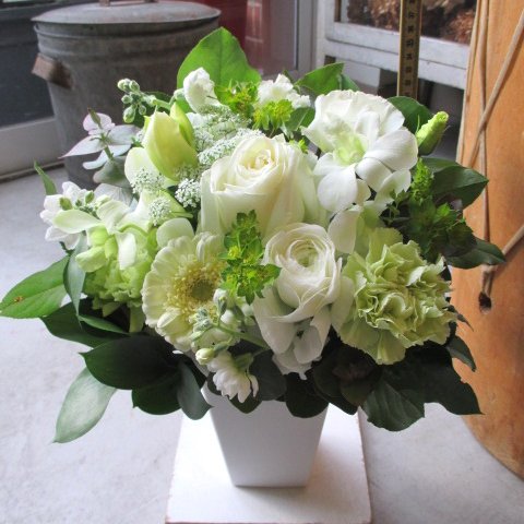 TVチャンピオン出場【今旬フラワーアレンジメント3,700円 ナチュラル 白・グリーン系】誕生日 花 誕生日 プレゼント 女性 フラワーアレンジメント 開業開店祝い 花 劇場 楽屋花 ギフト お見舞い お供え 花 送別会 父の日 花 父の日プレゼント 人気商品 父の日 ギフト ランキング