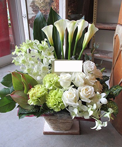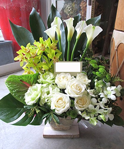 TVチャンピオン出場【今旬フラワーアレンジメント 8,000円 スタイリッシュ 白・グリーン系】誕生日 花 誕生日 プレゼント 女性 フラワーアレンジメント 開業開店祝い 花 劇場 楽屋花 ギフト お見舞い お供え 花 送別会 父の日