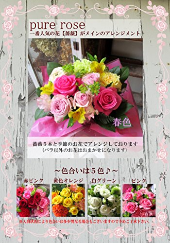 - ■一番人気の花【薔薇】がメインのアレンジメント■ブライダルなどにも使用される国産薔薇5本と季節のお花でアレンジしております!■写真はイメージです。入荷状況により色合い等は多少異なる場合もございますので予めご了承ください。