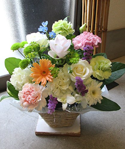 お供えアレンジメント淡色MIX 5,000yen(税別) 商品サイズ 幅×高さ 約 30cm×35cm 花材 季節の花・グリーン ※ご注意 生花のため、サイズはあくまでも目安になります。 ■お届け日のご希望を承ります。(お昼12:00迄のご注文で翌日以降)■時間指定のご希望も承ります。(但し配送業者の諸事情などにより指定時間内に配達ができない事もございますので予めご了承の上ご注文下さい) 【お供え】【四十九日】【一周忌】【お彼岸】【お盆】【お悔やみ】【枕花】【お悔やみ 花束】【お悔やみ アレンジ】【法事】【命日】など