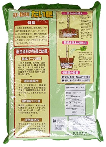 - 熟成バークたい肥と熟成腐葉土をベースにバランス良く配合したブレンドたい肥。