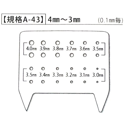 - 穴径:3.0mm・3.1mm・3.2mm・3.3mm・3.4mm・3.5mm・3.6mm・3.7mm・3.8mm・3.9mm・4.0mm