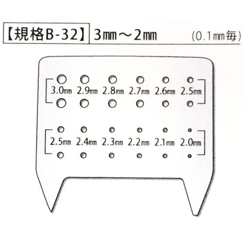 - 穴径:2.0mm・2.1mm・2.2mm・2.3mm・2.4mm・2.5mm・2.6mm・2.7mm・2.8mm・2.9mm・3.0mm