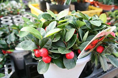 チェッカーベリーは寒さに強く、冬の間、赤い実が観賞できます。冬の実ものとしては、センリョウ、マンリョウ、ヤブコウジなどが多く利用されますが、チェッカーベリーは、草丈が低くこんもりと密に茂り、実も大きいので寄せ植えの材料として使いやすく、また、日陰のグラウンドカバーにもなります。鉢やコンテナでは、ビオラやアリッサム、ハボタンなどとの組み合わせ、さらにはシルバーリーフなどのさまざまな葉ものと組み合わせて、クリスマスや正月用の飾りに利用されます。鉢の縁から垂らすような使い方をすると、赤い実がよりいっそう目立ちます。常緑小低木で、地下茎を伸ばして広がり、寒さにあうと葉色は赤みを帯びます。実の直径1cm前後の在来種と、1.5cmくらいの大実のタイプとがあり、実の先端は5裂します。6月から7月にアセビに似た白い釣り鐘形のかわいらしい花を咲かせます。