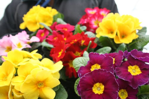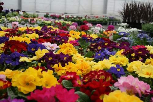 色鮮やかなプリムラジュリアンの8ポットセットです。いろいろと色鮮やかにセットしてお届します。 花苗の色合いなどは時期によって異なりますのでご了承ください