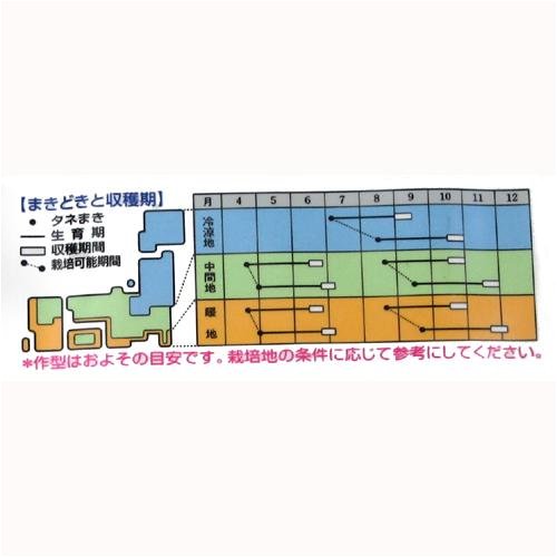 - そろいがよく秀品率が高い9月上旬まきの露地栽培(株間21×20cm)では、収穫までの日数は約60日程度。根長7cm、根径8cmぐらいの収穫が標準でそろいがよい。株間を調節することで、根径5~10cm程度までの収穫も可能となる。