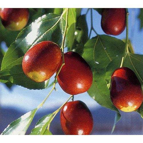 梨のようなさっぱりとした甘さが魅力のナツメ。棗や夏目などと表記されます。中国で昔から栽培されており、滋養・強壮の効果があるとして生薬としても利用されます。一本で実がつきます。大きな赤い実がつくので庭木にもオススメ。生で楽しむほか、砂糖漬けやジュースにしてもおいしい!