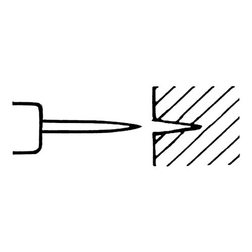 • 先端の形状は四角錐で鋭い円錐形の穴があけられ、四ツ目錐とも呼ばれます。