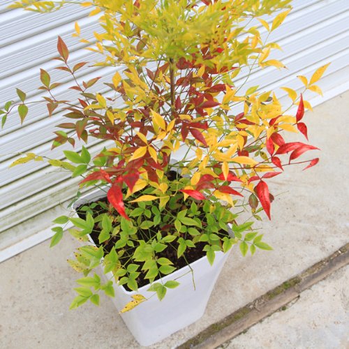 庭樹盆栽:紅白南天(鉢植え)鉢色選べます!(白or黒) (白)