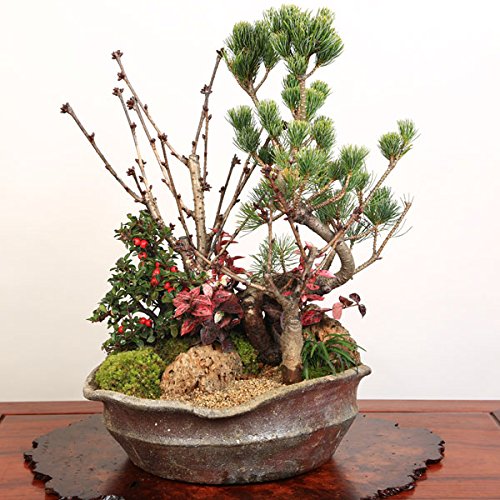 - 人気の高い花物盆栽、御殿場桜(一重)一才桜(八重)と紅したん・初雪かづら・玉竜そして豪華な五葉松の寄せ植えです。 一才桜は桜の中でも特に花付きがよく、毎年開花が楽しめます。