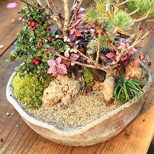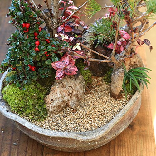 - 桜は落葉樹。五葉松(常緑樹)は名前から「御用を待つ」という意味を表し、縁起が良いとされてきました。 添えには、濃い緑の葉と秋になると赤く実が色づく『紅したん』(半落葉樹)と色鮮やかな初雪かづら、力強い『玉竜』を合しています。 足元には緑が美しい苔を貼っており、完成品ですので、そのまますぐに飾れます。