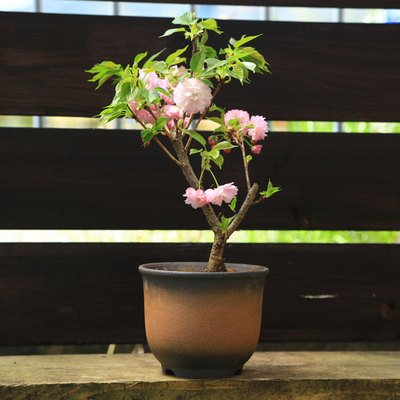 豪華な八重桜盆栽:紅華桜(こうかざくら)