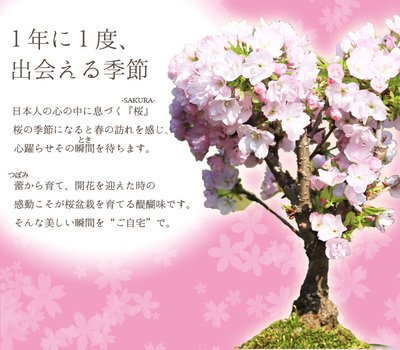 桜盆栽:八重桜(信楽焼金彩足付丸鉢)*