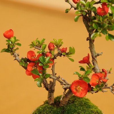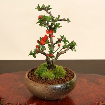 - 長寿梅(チョウジュバイ) :バラ科ボケ属/落葉樹 花は4月頃に最も多く咲きますが、春夏秋冬を通じて咲く事もあります。 花はかれんで、葉と調和のとれた姿に野趣があります。