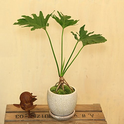 観葉植物:フィロデンドロン セローム*陶器鉢 受皿付 苔